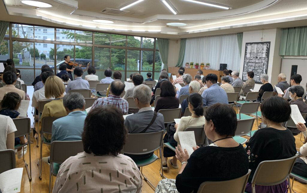 9月28日(日)14:00-から仲町交流センターホールにて参加者70名で第16回目の『ヴァイオリンとピアノの調べ』を開催しました。ホールでのコンサートの向きを海側に向けて3年めです。暑さも終わるこの時期にふさわしく深く強いヴァイオリンの音色が心にしみるようでした。最後のアンコールでは全員で楽しく「アンパンマンのマーチ」を歌い散会しました。また来年も開催して皆さまに楽しんでいただきたいと思います。