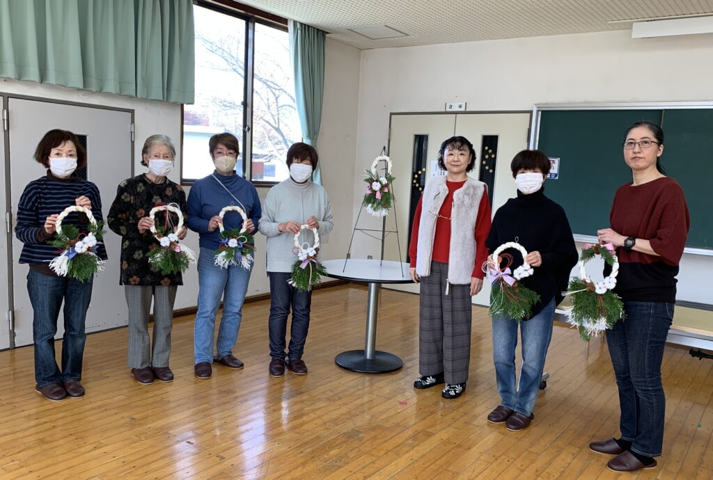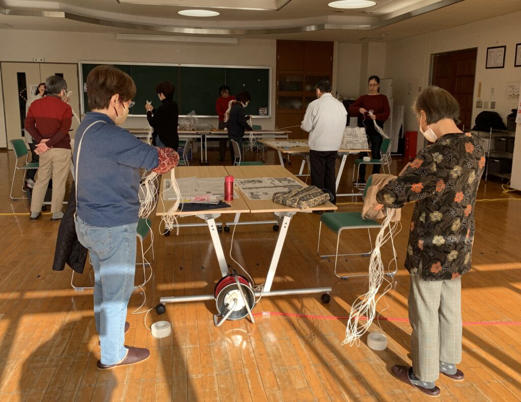 12月13日(土)10:00-から仲町交流センターホールにて参加者6名で『モダン正月飾り作り』を開催しました。紙紐で紐を編むモダンな正月飾りです。この紐を編むところが一番の難所でした。最後に各自完成した正月飾りを持ち寄り先生を囲んで記念写真をとり閉会しました。