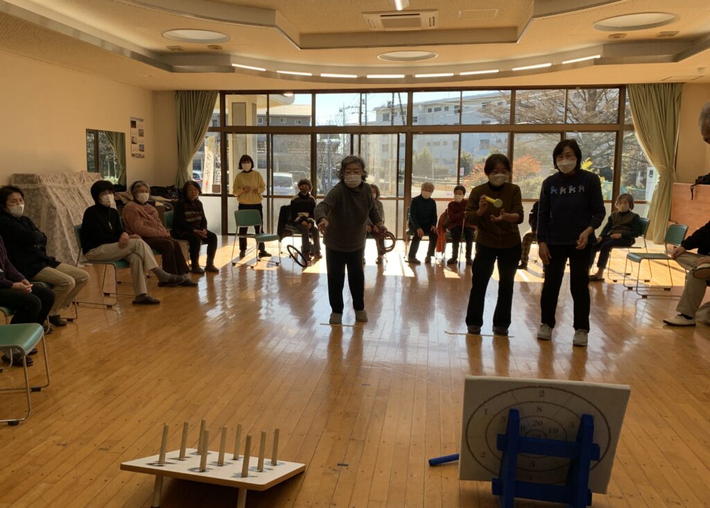 1月9日(金)10:00-から仲町交流センターホールにて参加者21名で今年最初の『おしゃべりサロン』を開催しました。まず大内さんの指導でシルバーリハビリ体操を行いました。そのあと「ソフト・ラバーダーツ」と「輪投げ」を全員で楽しみました。最後に茶話会で「ぜんざい」を頂きおしゃべりサロンを締めくくりました。