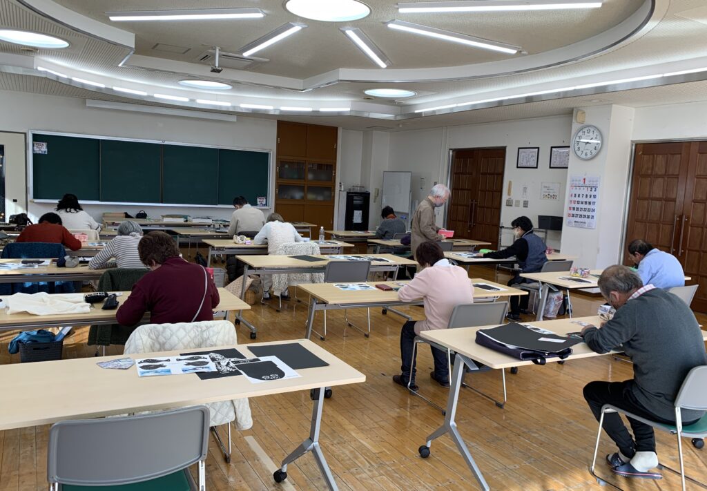 『切り絵教室』の第8回目の教室を開催しました。 2026年1月16日 最終更新日時 : 2026年1月16日 c-nakama13 1月16日(金)13:30-から仲町交流センターホールにて参加者12名で第8回目の『切り絵教室』を開催しました。今月は『仏画を切る』と『重ね切りで浮世絵を切る_團十郎・暫』(初心者)が課題です。 前半はもくもくと切る作業です。 本日の課題 先生の作品です。